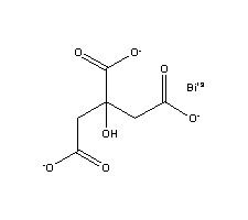 詳細信息: 中文名稱 檸檬酸鉍 英文名稱 bismuth(iii) citrate CAS RN 813-93-4 分 子 式 C6H8O7 分 子 量 192.12 物化性質(zhì) 灰白色有光澤的透明片狀物或白色粉末。稍具酸性。溶于水,微溶于乙醇。 用 途 枸櫞酸鉍鉀中間體